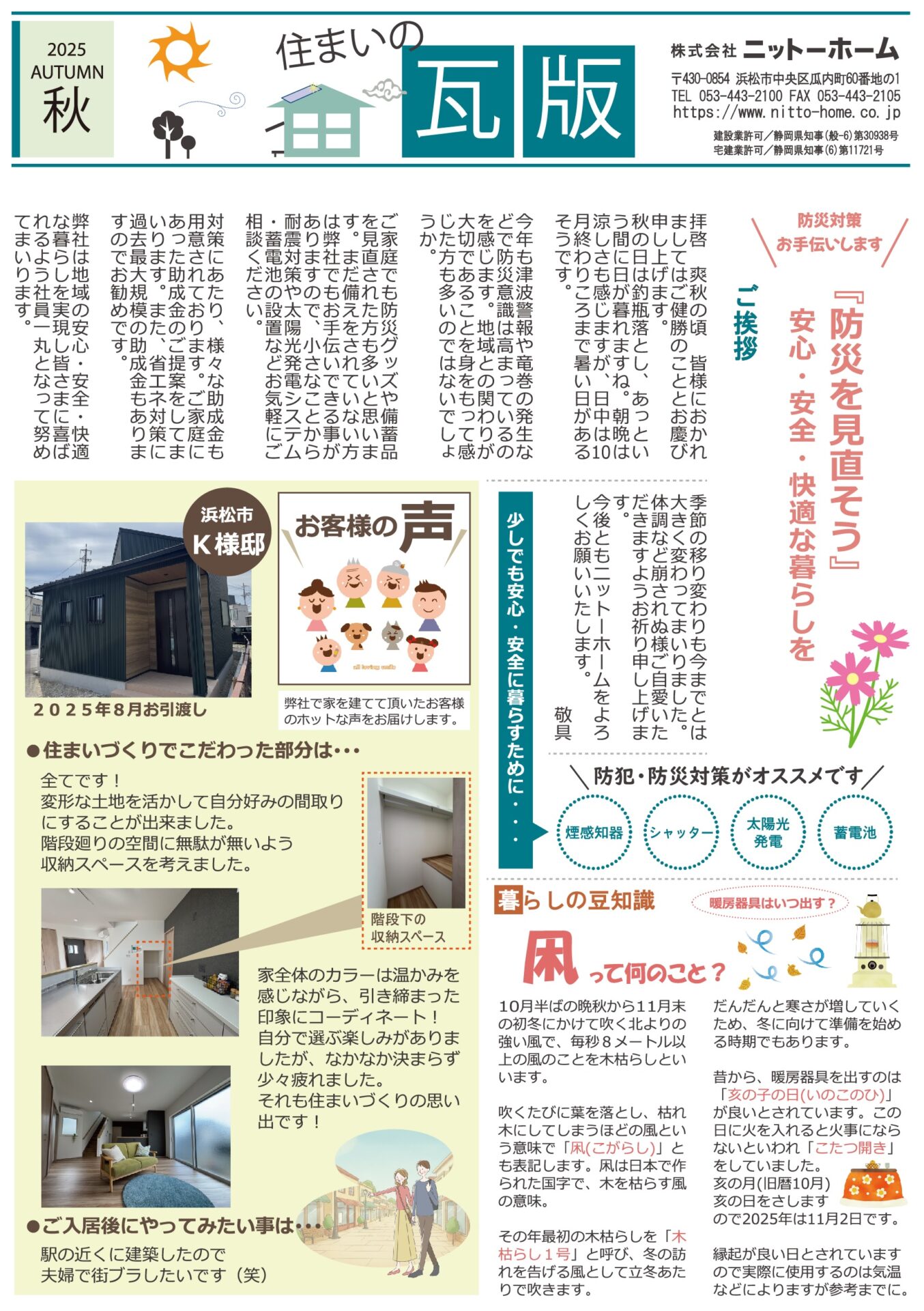 住まいの瓦版2025年秋号発行@浜松市中央区工務店