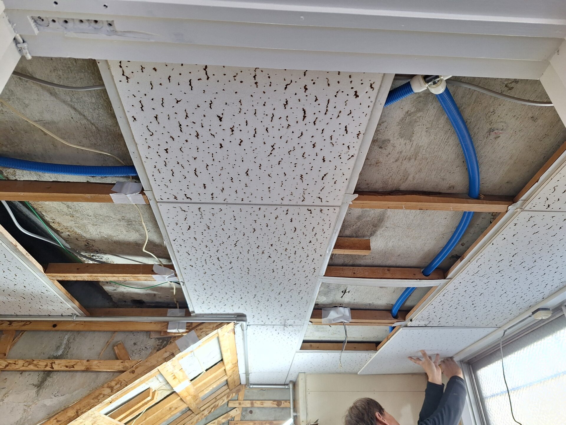 表面に出ていた配管は可能な限り天井裏へ隠蔽していきます