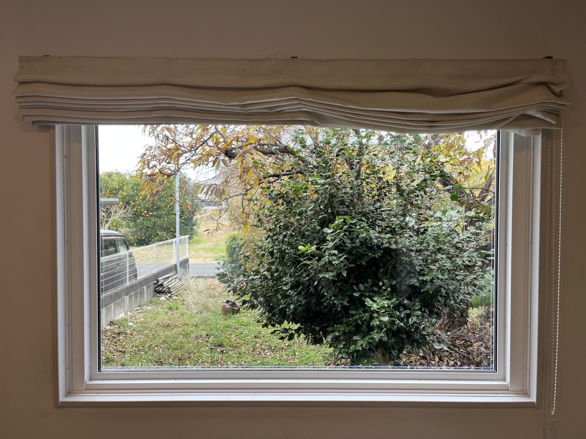 こちらのお宅ではこちらの引違窓を開けることが無く、この窓額縁でネコちゃんがひなたぼっこをするので…ということで。引違窓から開けることが出来ないFIX窓へのご希望でした。
