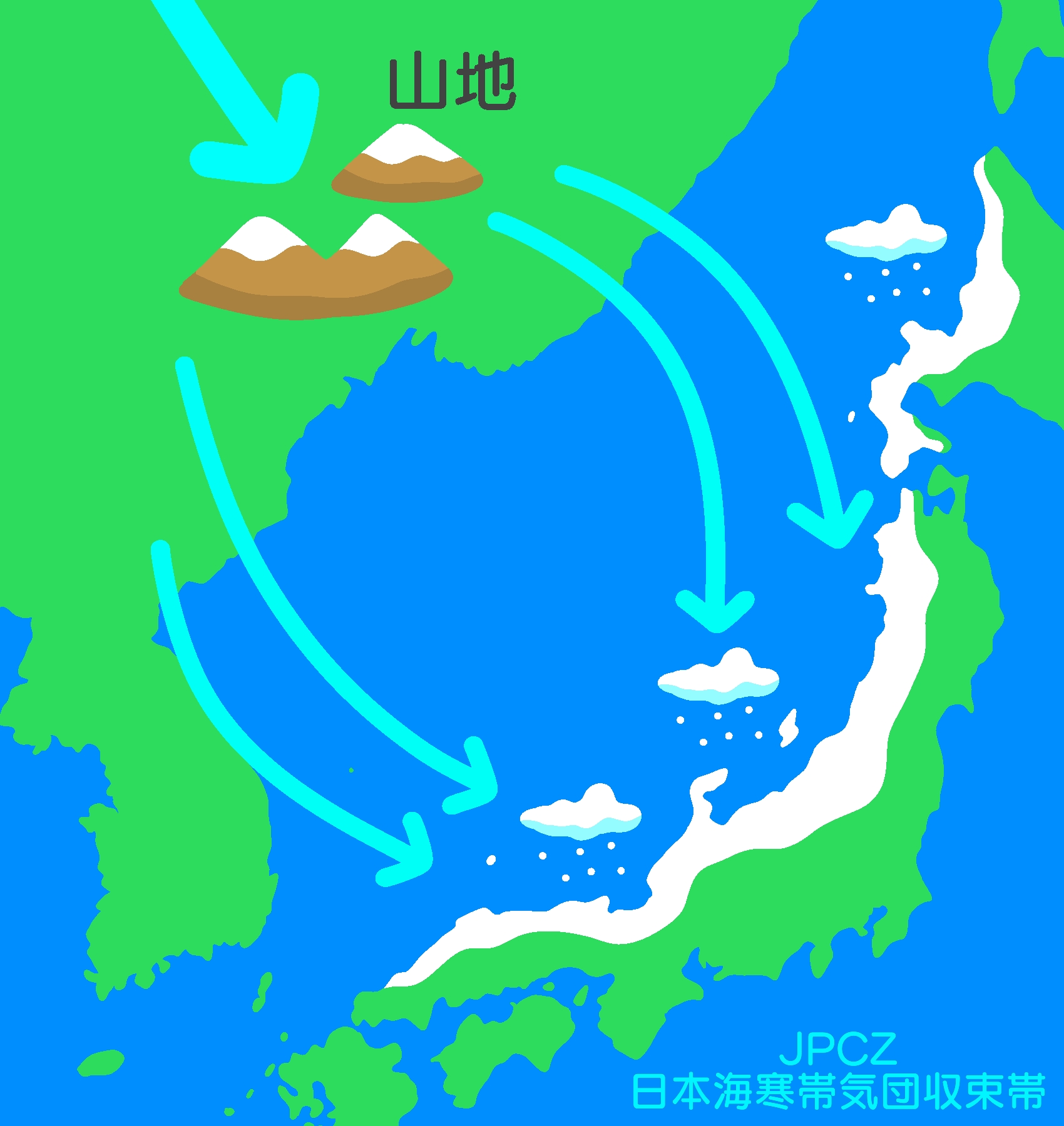 「JPCZ」という言葉を耳にしたことはありますか。私は昨年初めて耳にしました。正式には「日本海寒帯気団収束帯」といって、日本海の上で冷たい空気が集まり、強い雪雲の帯をつくる現象のことです。この帯がかかると、短い時間で一気に雪が積もることがあり、北陸や山陰では交通が止まったり、生活に影響が出ることもあります。