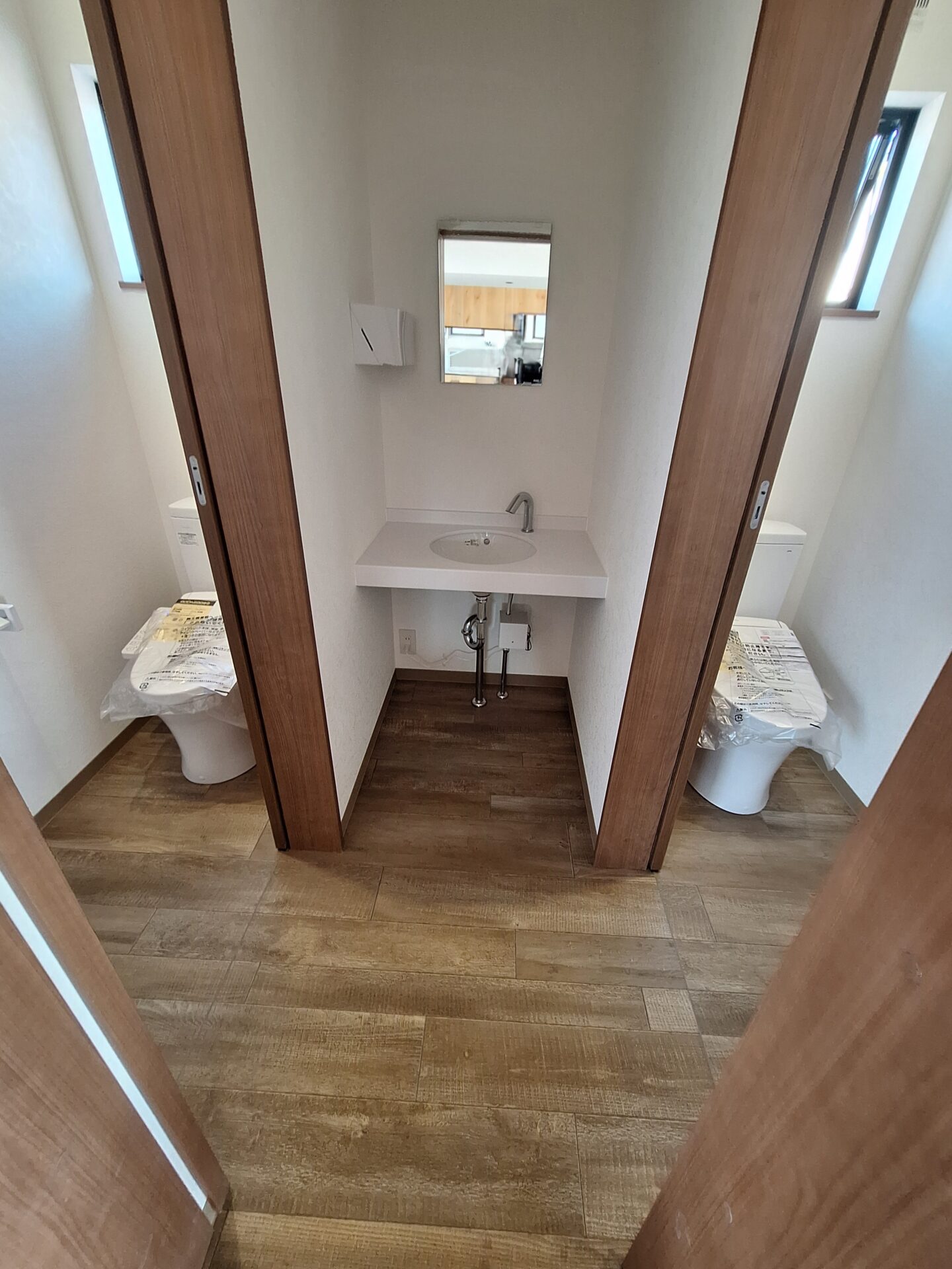 1階店舗内や2階事務所にはトイレや手洗い、消防用設備が付きました