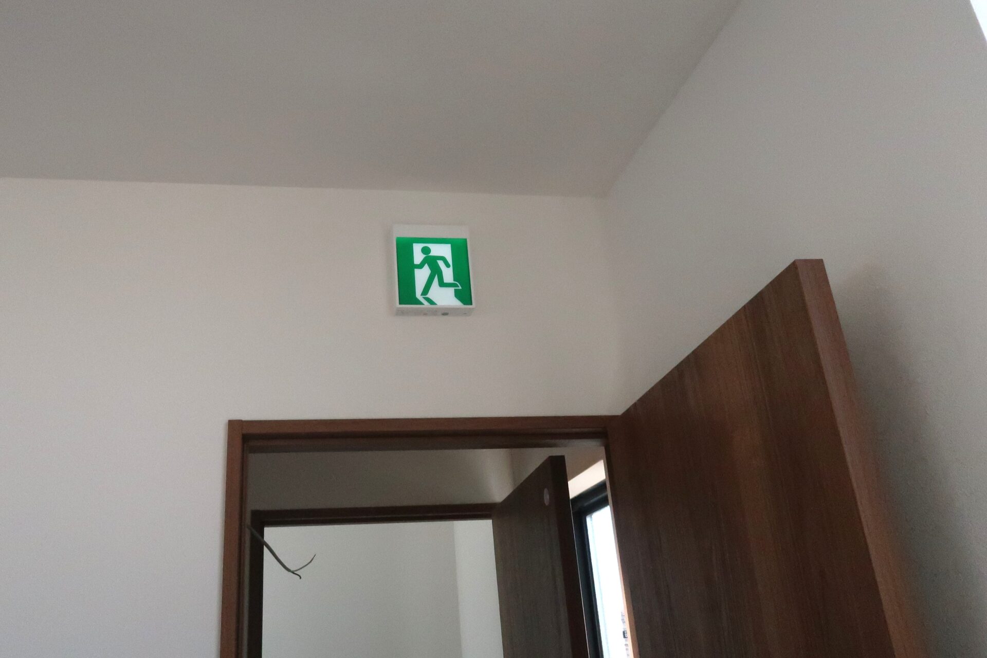 非常用照明は停電すると自動で点灯・床面を一定時間照らす設備です