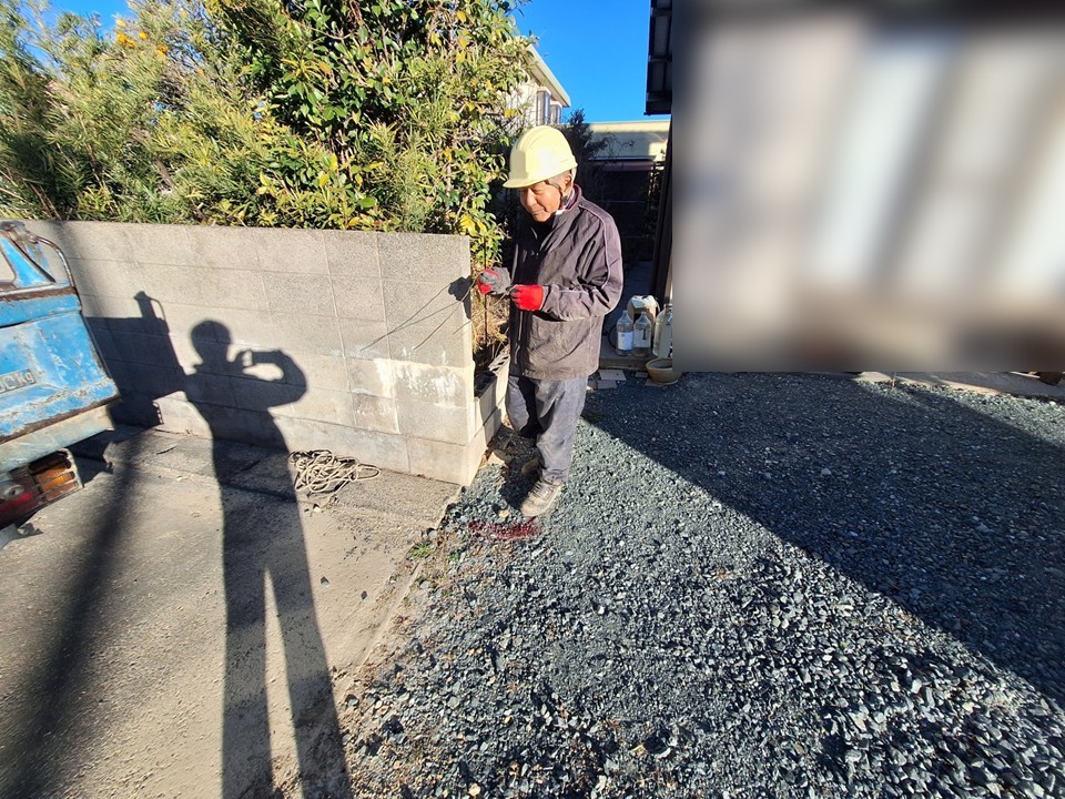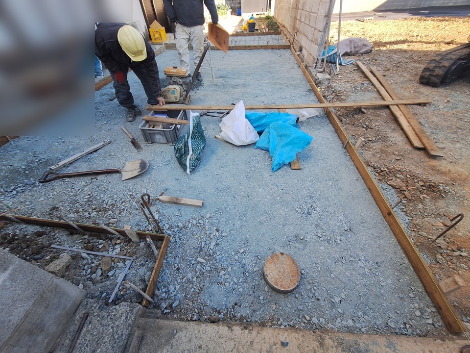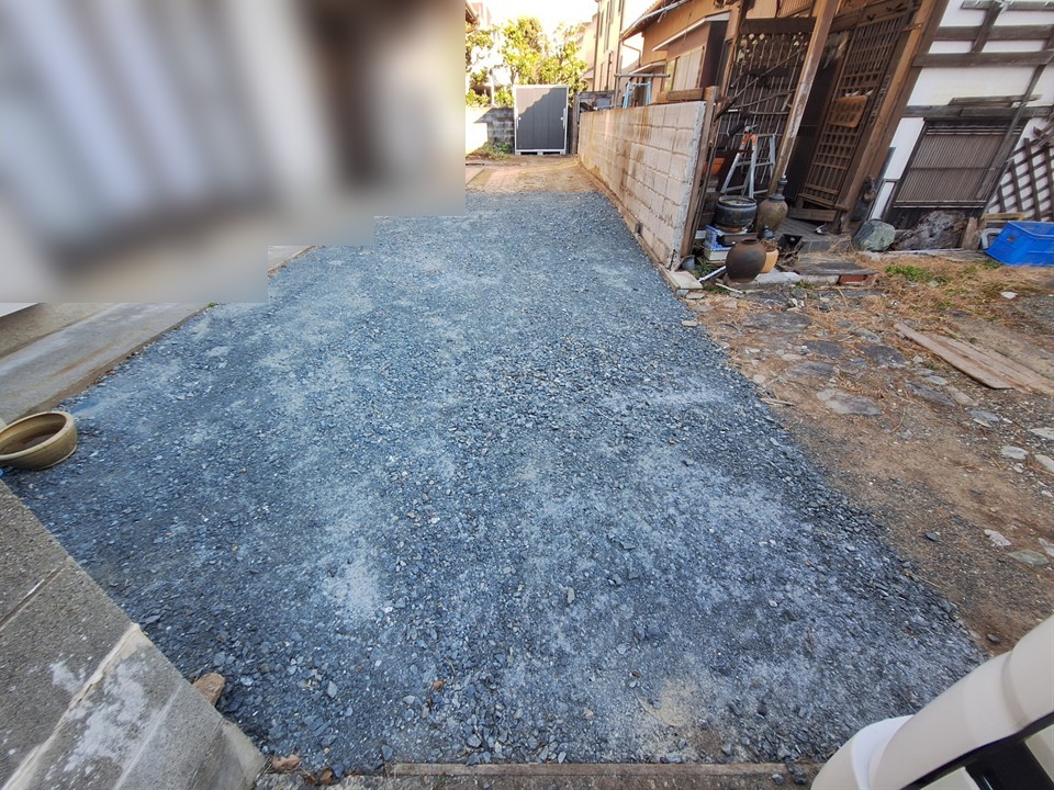 磐田市で砕石敷きの玄関前を駐車場兼アプローチとするコンクリート工事を行ないました