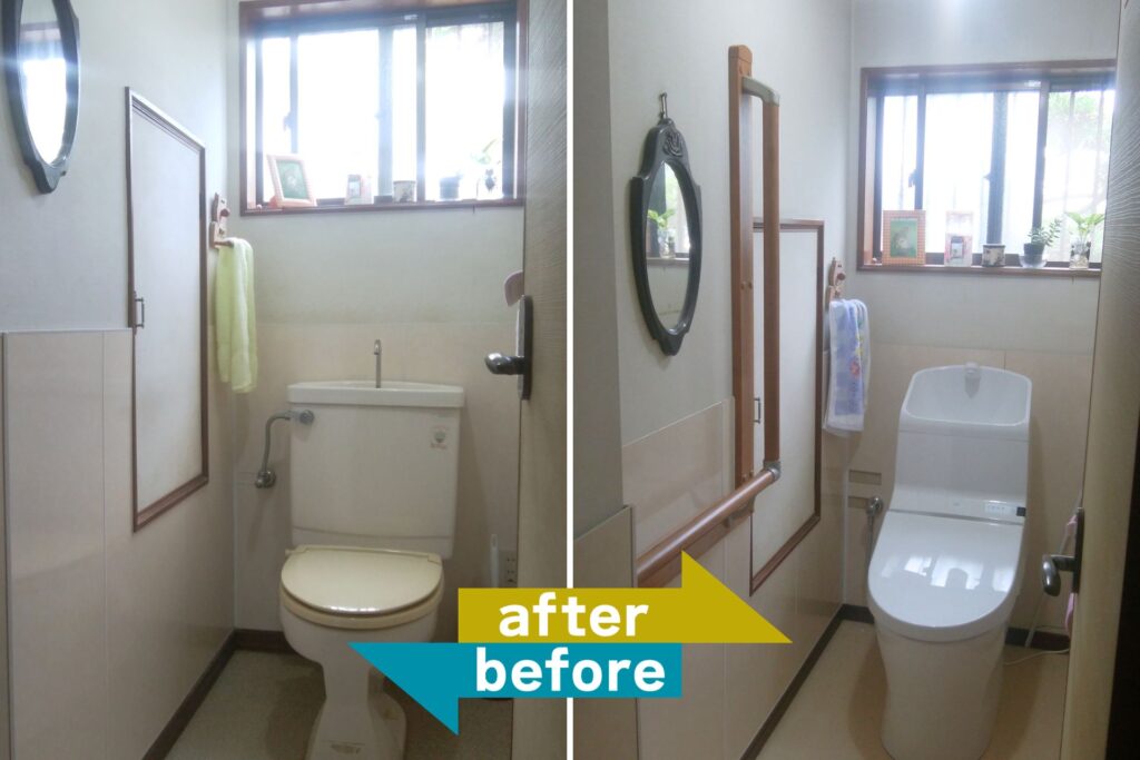 玄関や階段など靴を脱ぎ履きする際や、昇降時のふらつきを防止しますし、トイレや浴室は立ち座りの動作をサポートし、足腰への負担を和らげます。