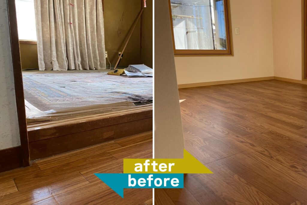 敷居を撤去し、床と廊下を合わせフラットにすることで家の中をスムーズに移動できるようになります。段差がどうしても解消できない場所には、スロープを設置したり、色のコントラストをつけて分かりやすくする工夫も有効です。